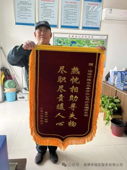 兩名學生在考試前到齊盛湖公園游玩,一時疏忽將手機遺失,而遺失的手機內(nèi)保存有考試所需的所有信息及資料。情急之下,他們向安保項目部求助。得知情況后,項目部立即通過調(diào)取監(jiān)控,調(diào)度隊員展開接力尋找,最終成功找到遺失的手機。兩名學生對項目部及安保隊員的熱忱相助和盡職盡責表示感謝,并贈送了一面寫有“熱忱相助尋失物,盡職盡責暖人心”的錦旗。