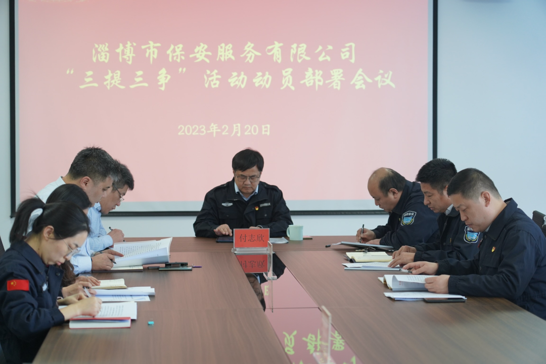 2月20日下午,淄博市保安服務(wù)有限公司召開(kāi)黨委會(huì)議,學(xué)習(xí)全市“三提三爭(zhēng)”活動(dòng)動(dòng)員大會(huì)精神,傳達(dá)《市國(guó)資委黨委關(guān)于開(kāi)展“三提三爭(zhēng)”活動(dòng)的通知》要求,并對(duì)下一步工作進(jìn)行研究部署。公司黨委班子全體成員參加會(huì)議,黨委書(shū)記、董事長(zhǎng)付志欣主持會(huì)議。