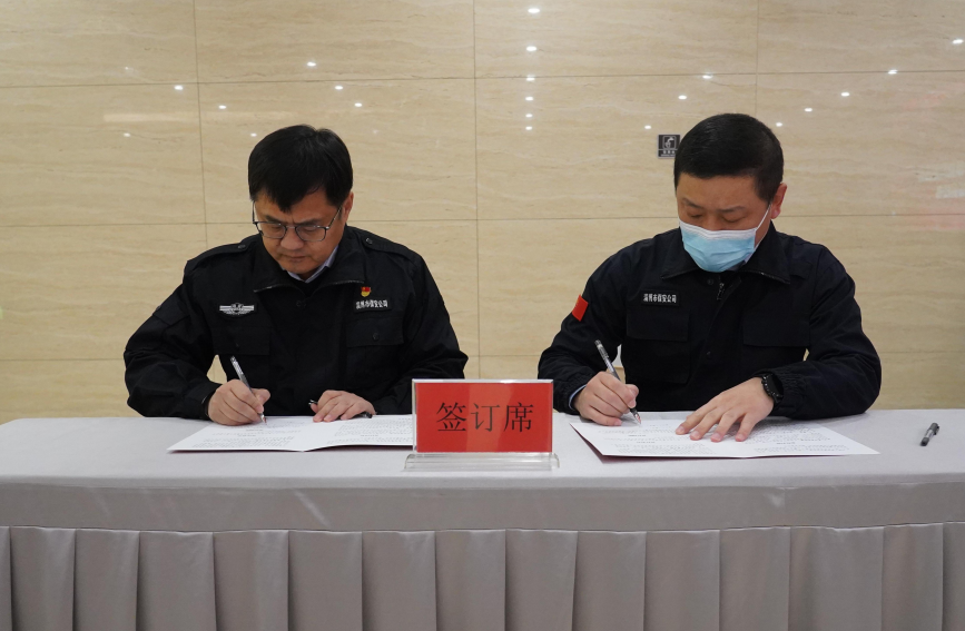 黨委書記、董事長(zhǎng)付志欣同志與中層代表簽訂2023年度黨風(fēng)廉政建設(shè)目標(biāo)責(zé)任書、2023年度安全生產(chǎn)目標(biāo)責(zé)任書,與押運(yùn)隊(duì)員代表簽訂持槍人員規(guī)范用槍承諾書。